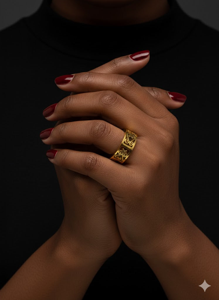 ONE SIZE FITS ALL : Adjustable ring ranging from size 6-8