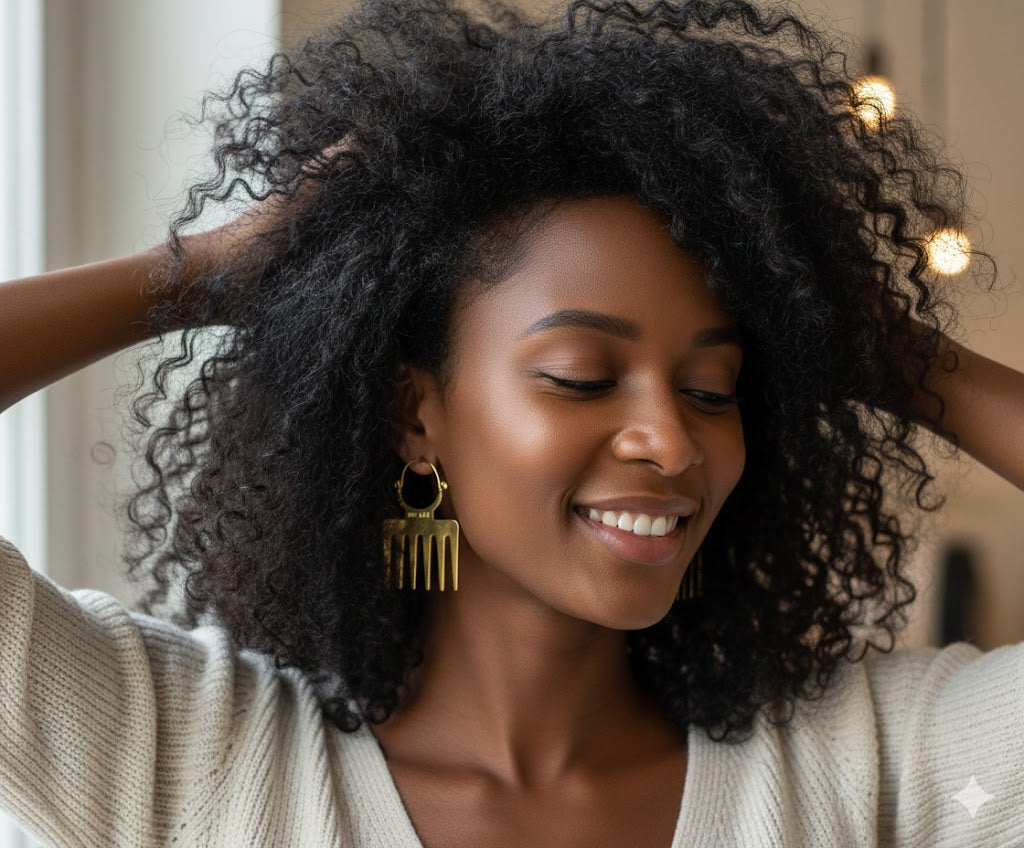 These DUAFE HOOPS (EWA) feature unique AFRO PICK EARRINGS, perfect for adding a touch of cultural and stylish charm to any outfit. Crafted with precision and attention to detail, these hoops are a must-have for any fashion-forward individual looking to make a statement.